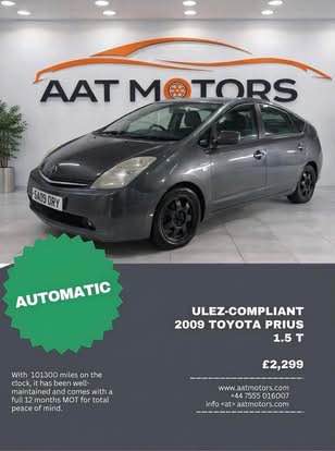 This ULEZ-compliant 2009 Toyota Prius 1.5 T4 Hatchback has 101300 miles on the clock and is powered by a Petrol Hybrid engine, making it an environmentally friendly choice. With MOT valid until 02/09/2026, this 5-door vehicle offers plenty of space for passengers and luggage, boasting 5 seats and a practical hatchback design. The efficient Petrol Hybrid CVT engine produces just 104 g/km of CO2 emissions and delivers 76 bhp, ensuring a smooth driving experience while being kind to the environment. This reliable and economical car is the perfect choice for city driving and long journeys alike.